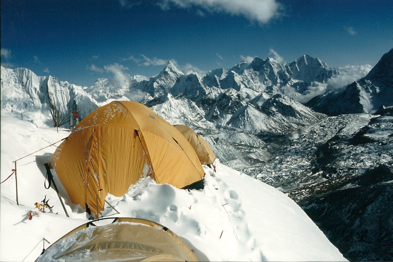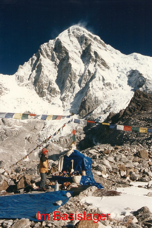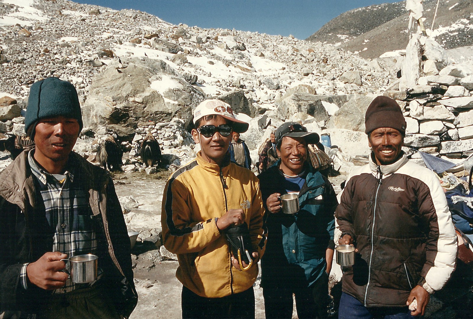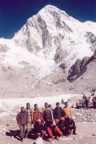Pumori im Basislager, 5300 m Höhe mit Sherpa Mannschaft