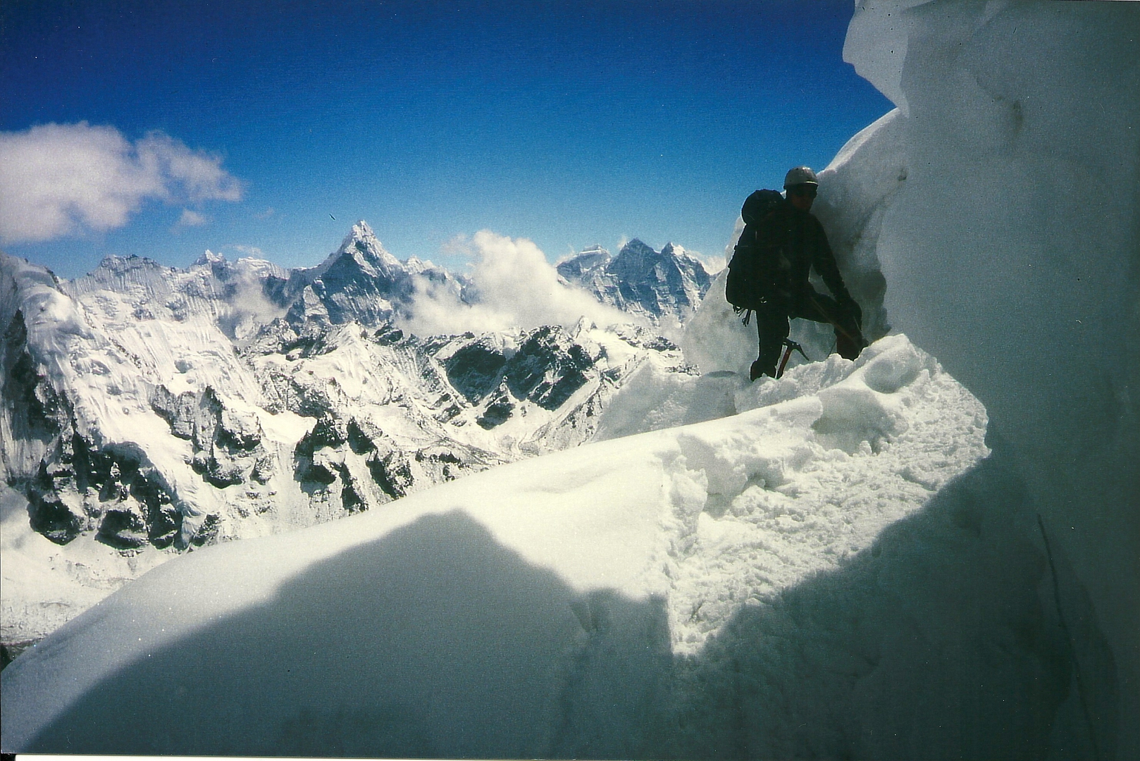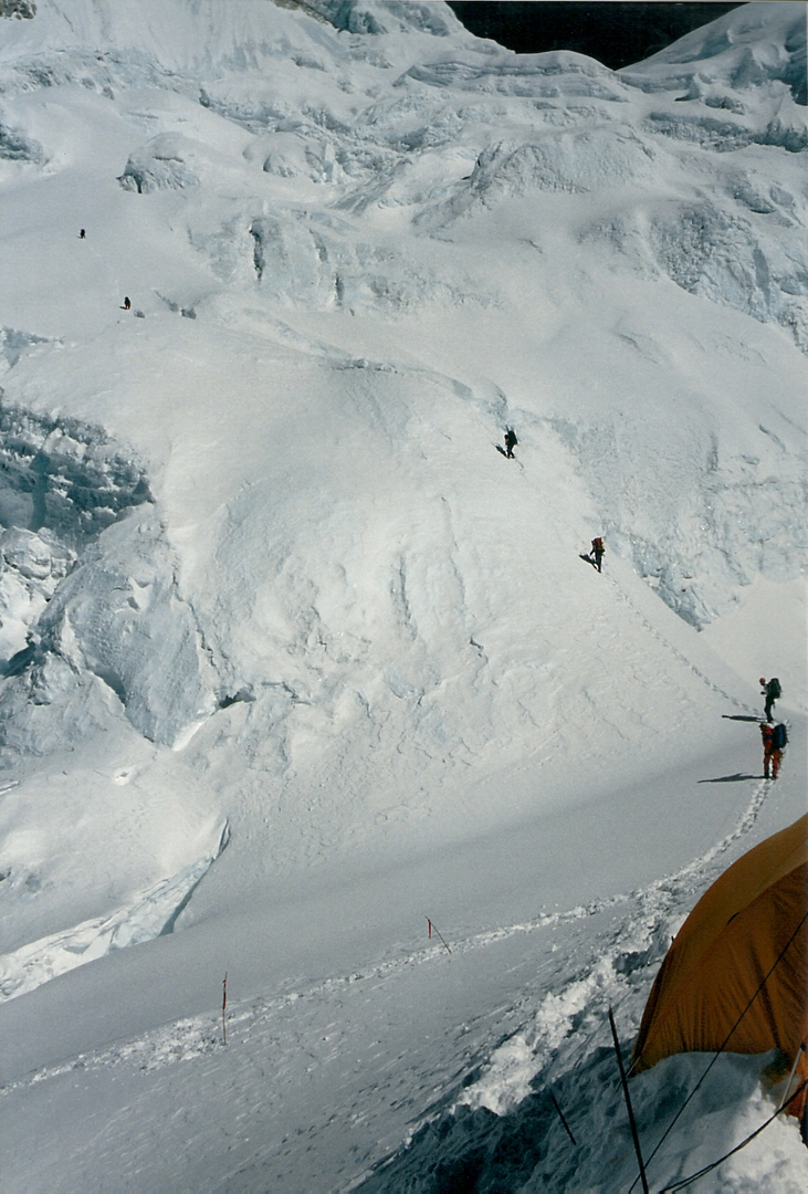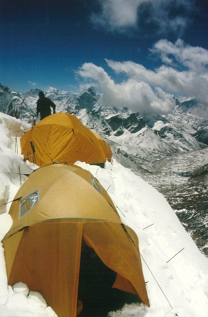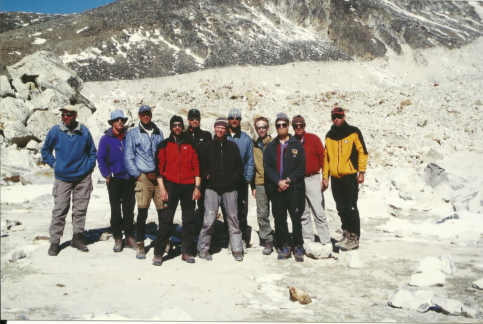 Pumori im Basislager, 5300 m Höhe mit Sherpa Mannschaft